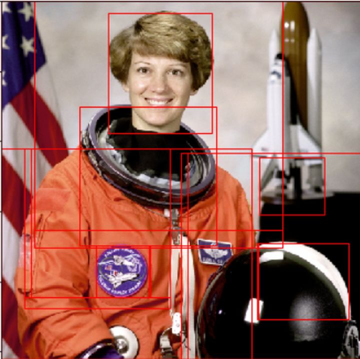 这类区域推荐算法实际上多是通过传统的图像分析方法通过边缘、纹理、颜色等特征尽可能地推荐图像中可能存在目标的区域,在这里我不详述,仅需要知道使用该算法我们在图像中获取很多推荐区域,如下图红色的框为SSW推荐区域: